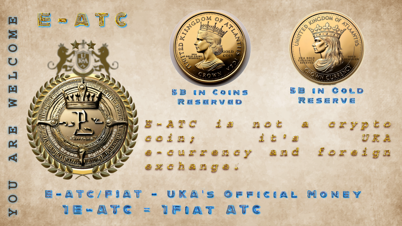Atlantian Crown (ATC) is the United Kingdom of Atlantis (UKA) digital currency designed to serve as a versatile and innovative asset within the evolving landscape of decentralized finance. Positioned as a cutting - edge Blockchain E-currency. ATC provides a secured, efficient and globally accessible Decentralized Currency for transactions, investments and all asset's management. One E-Currency ATC is equal to one Fiat ATC. Key Features of ATC: DECENTRALIZED TECHNOLOGY: Built on blockchain to ensure transparency, security, and independence from traditional banking systems. SECURE TRANSACTIONS: uncompromised Advanced encrypted protected transactions, ensures users data and assets are safeguarded. DYNAMIC EXCHANGE RATES: Real-time market updates allow users to trade and manage their ATC assets effectively. UTILITY ACROSS BORDERS: Designed for universal access & usage, ATC facilitates seamless transactions worldwide without currency exchange hassles. ADAPTABILITY: Usable for various applications, online / offline accountability including retail purchases, peer-to-peer transfers, local banks Transfer, servers as investment tool, accepted by millions of online & offline Merchants. Atlantian Crown (ATC) aims to revolutionize the digital economy by merging durability, efficiency, and innovation to users in the digital age. Uses as means of payment, Storage, asset values or investment vehicle, ATC aspires to redefine the ways we interact with money.